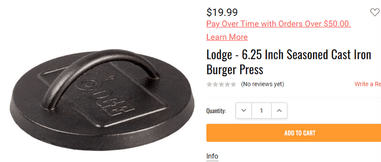 Lodge Cast Iron Burger Press , Visually Good Condition