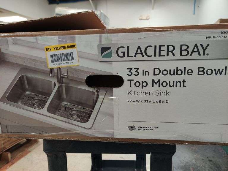 Glacier Bay Double Bowl Top Mount Kitchen Sink, 33" , Like New/Open Box