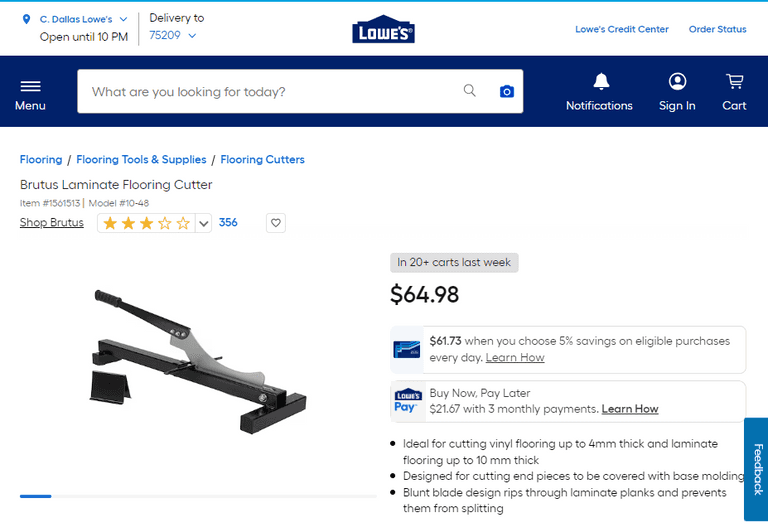 Brutus Laminate Flooring Cutter , Like New/Open Box