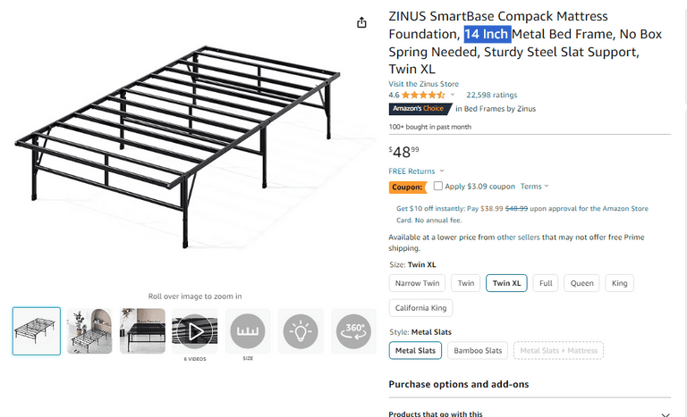 ZINUS SmartBase Compack Mattress 14 Inch , Like New/Open Box