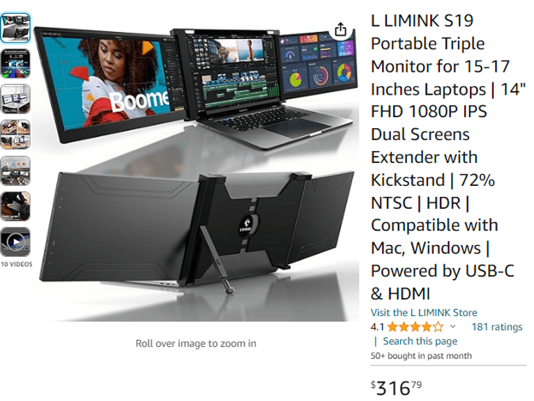 LIMINK S19 Portable Triple Monitor , Employee Tested