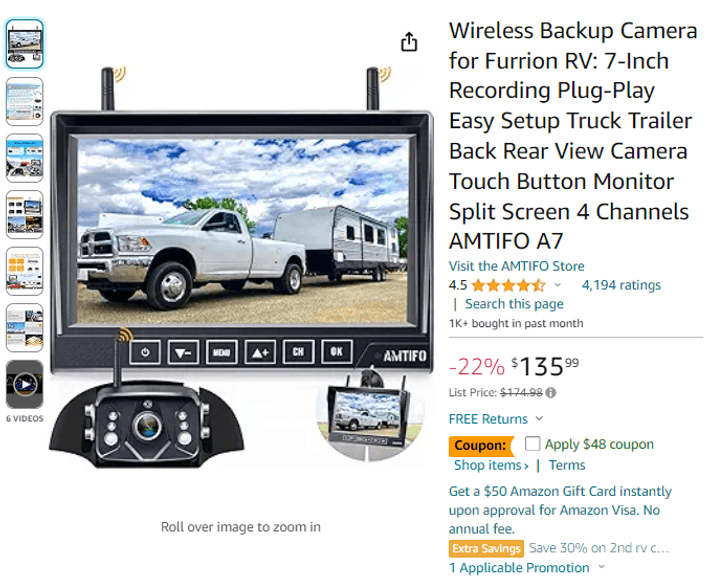 Wireless Backup Camera for Furrion RV , Like New/Open Box