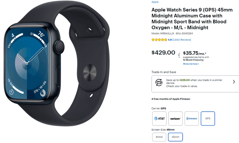 Apple Watch Series 9 GPS 45mm , Employee Tested