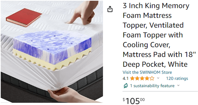 Swinhom Memory Foam Mattress Topper, King , New/Sealed