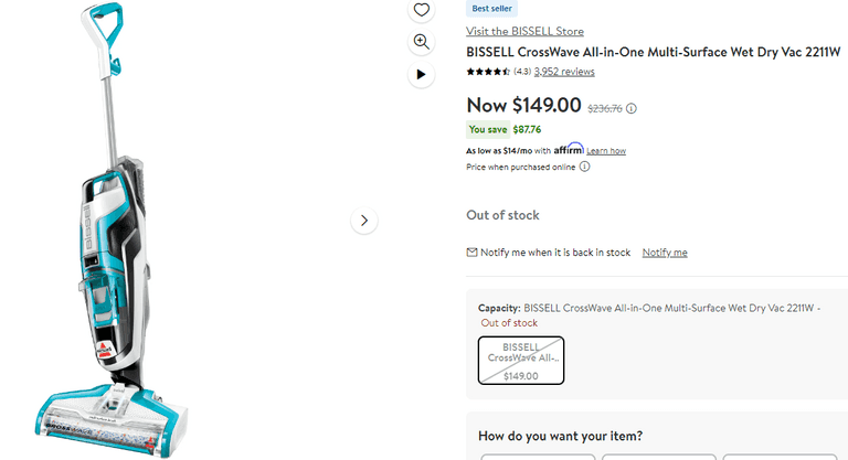 BISSELL CrossWave Multi-Surface Wet Dry Vac 2211W , Employee Tested