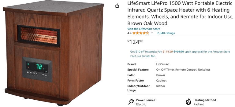 LifeSmart 1500W Portable Infrared Quartz Space Heater , Employee Tested