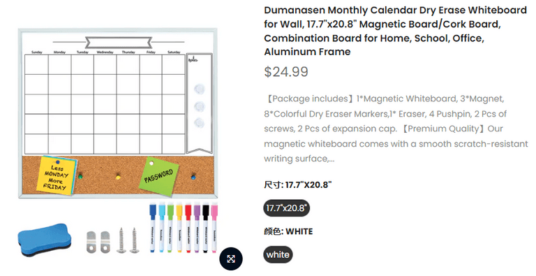 Dumanasen Monthly Calendar Dry Erase Whiteboard Set , Like New/Open Box