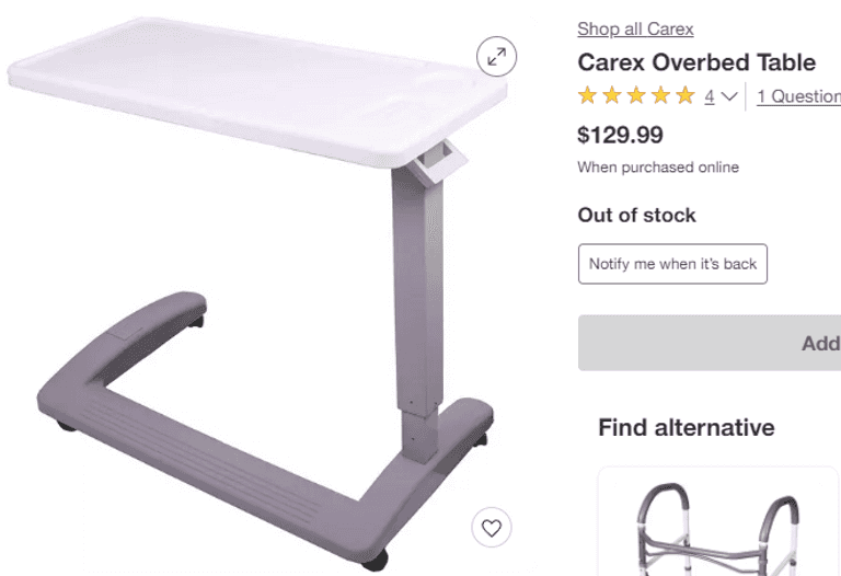 Carex Overbed Table , Like New