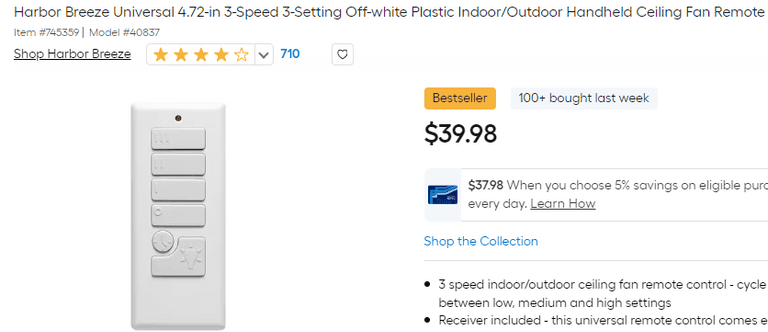 Harbor Breeze Universal Handheld Ceiling Fan Remote , Like New