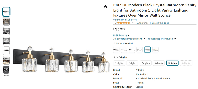 PRESDE Modern Black Crystal Bathroom Vanity Light , Like New