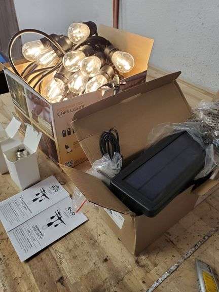 Outdoor LED Cafe Lights and Solar Floodlight Bundle, Like New