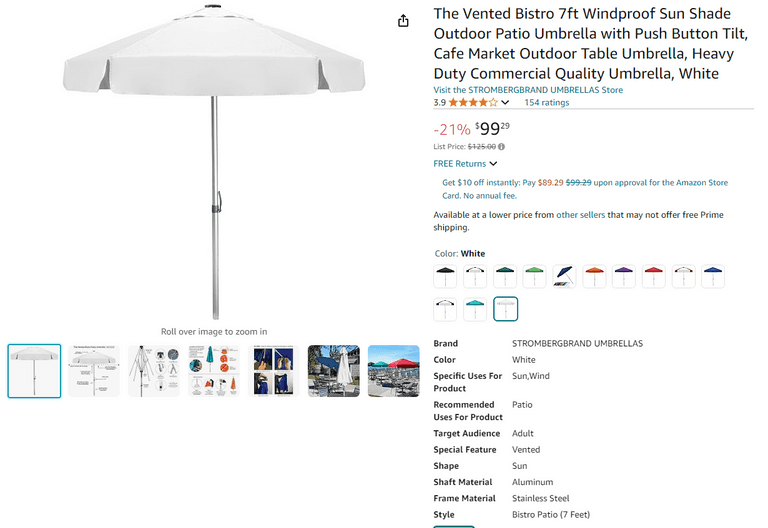 Strombergbrand The Vented Bistro Large Outdoor Patio Umbrella w/ Tilt Adjustments, Open Box