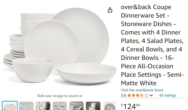 over&back Coupe Dinnerware Set 16 Pc, Like New