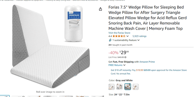 Forias Memory Foam Wedge Pillow, 24" x 22" x 7.5", Like New