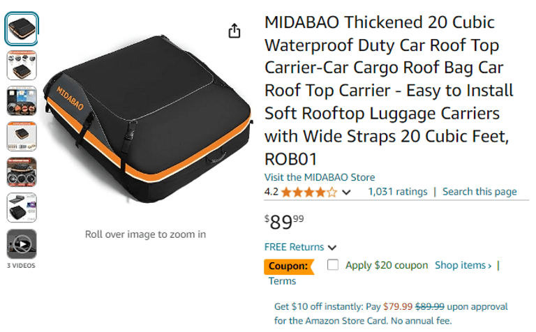 MIDABAO Thickened 20 Cubic Waterproof Duty Car Roof Top Carrier-Car Cargo Roof Bag, Open Box
