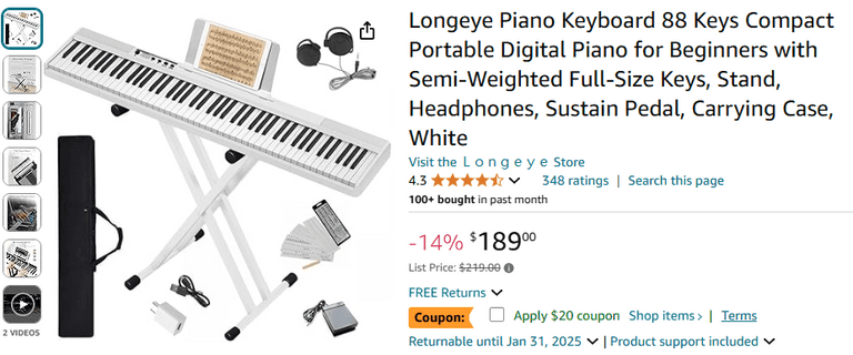 Longeye 88 Keys Compact Portable Digital Piano | Like New