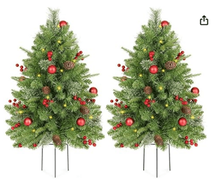 KING BIRD 2 Set 30 Inch Outdoor Christmas Tree, Pre-Lit LED Christmas Porch Decorations | Open Box | (See Condition Notes)