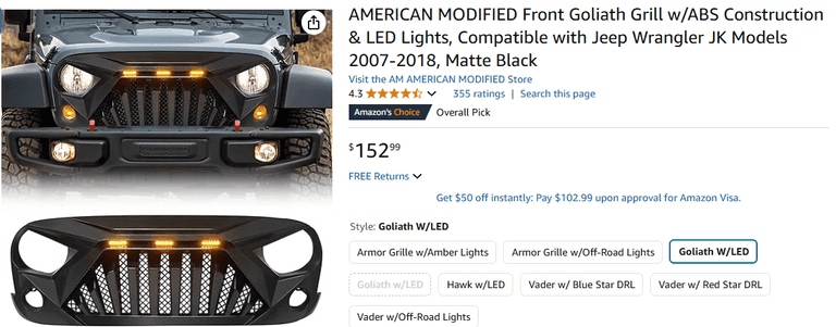 AMERICAN MODIFIED Front Goliath Grill w/ABS Construction & LED Lights, Compatible with Jeep Wrangler JK Models 2007-2018 | Like New
