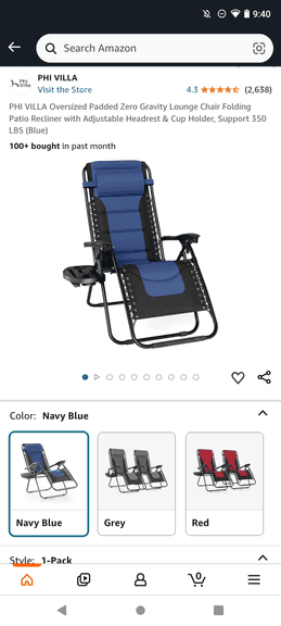 Phi Villa Oversized Padded Zero Gravity Folding Lounge Chair | Open Box | (See Condition Notes)