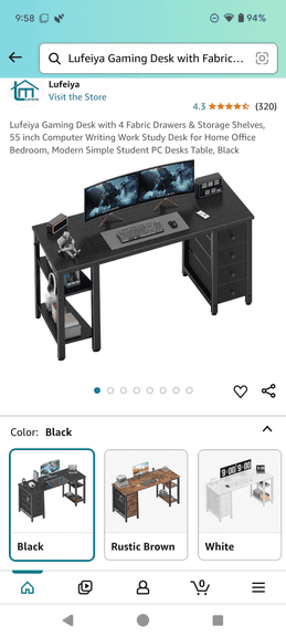 Lufeiya Gaming Desk With 4 Fabric Drawers Black | Open Box | (See Condition Notes)