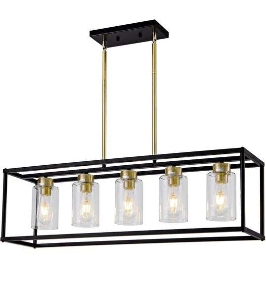 HCCZ 5-Light Hanging Pendant Fixture, 36.6 x 8.7 x 46.5" | Like New | (See Condition Notes)