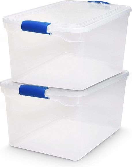 HOMZ 2-Pack Latching Lid, Large Clear Plastic Storage Bins with Lids, 66 Quart, Blue Latch | Damaged | (See Condition Notes)