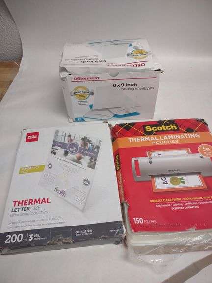Office Depot 6x9 Catalog envelopes, Office Depot Thermal Laminating Pouches, and Scotch Thermal Laminating Pouches. | Open Box | (See Condition Notes)