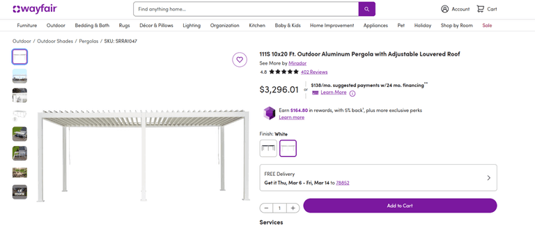 Mirador 111S 10' x 20' Outdoor Aluminum Pergola w/ Adjustable Louvered Roof | Open Box