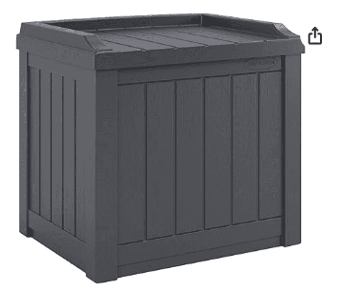 Suncast Small Deck Box Storage w/Bench Seat for Indoor & Outdoor Use, 22 Gal., Cyberspace | Open Box