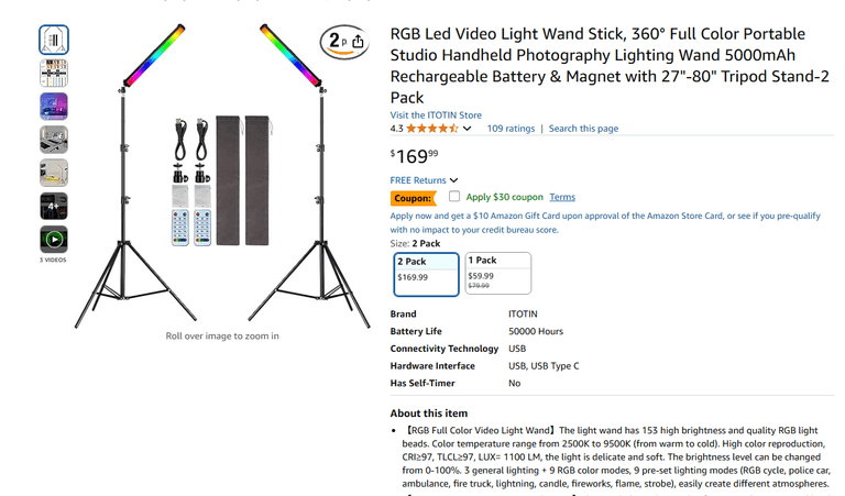 RGB Led Video Light Wand Stick, 360° Full Color Portable Studio Handheld Photography Lighting Wand 5000mAh | Like New | (See Condition Notes)