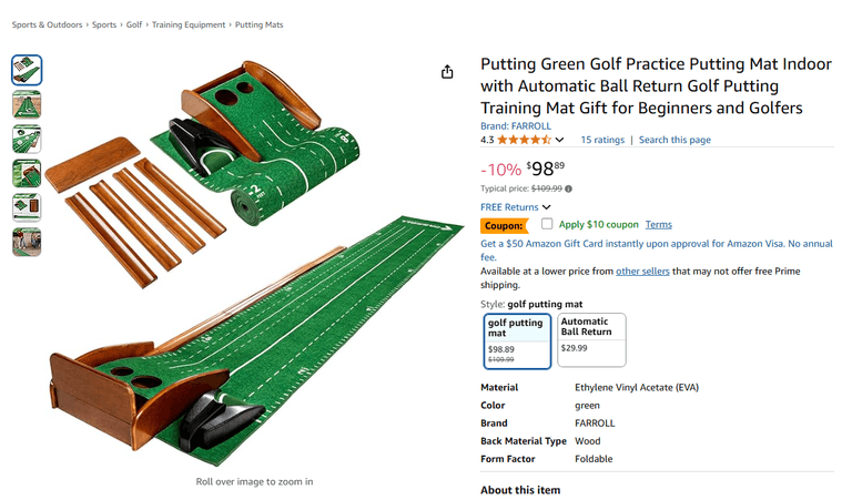 Putting Green Golf Practice Putting Mat Indoor with Automatic Ball Return | Like New | (See Condition Notes)