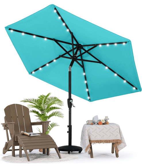 MASTERCANOPY Patio Umbrella w/Solar LED Lights, 7.5', Turquoise | Like New