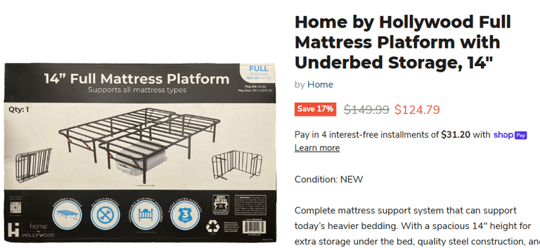 Home by Hollywood Full Mattress Platform with Underbed Storage, 14" FULL | Open Box | (See Condition Notes)