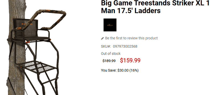 Big Game Treestands Striker XL 1 Man 17.5' Ladders | Open Box | (See Condition Notes)