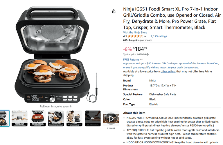 Ninja IG651 Foodi Smart XL Pro 7-in-1 Indoor Grill/Griddle Combo | Like New | (See Condition Notes)