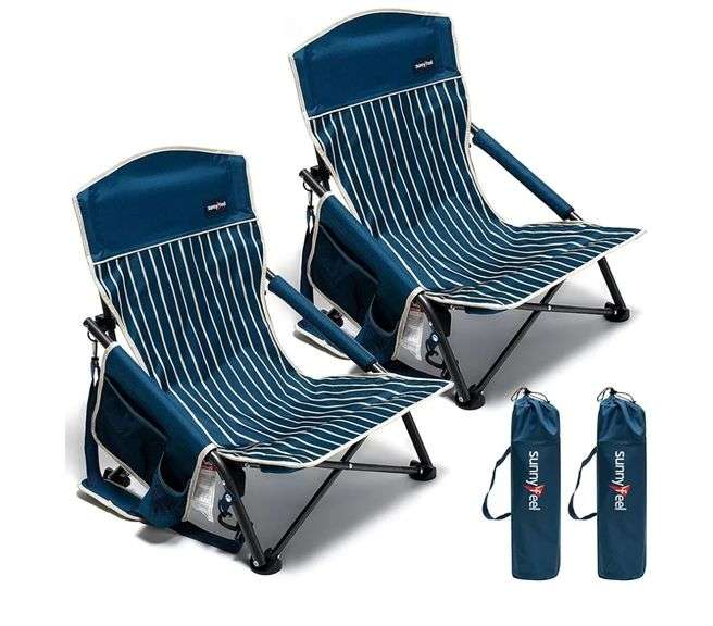 SunnyFeel Foodling Low Camping Beach Chairs, 2 Pack | Like New | (See Condition Notes)