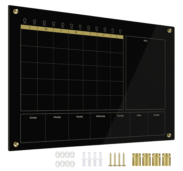 Marribol Black Glass 3-1 Monthly Whiteboard 24"x 36", Frameless | Open Box | (See Condition Notes)