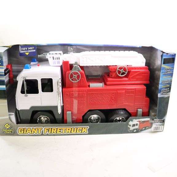 Members Mark Giant Firetruck Category: Toys & Games Condition Disclaimer: Please read the title and review images carefully. Unless the title specifies otherwise, auction lots HAVE NOT been tested or inspected. If an items is new or tested, it will be noted in the title. If we are aware of any damage or defect, that will be listed in the title as well. If the title does not specifiy a condition then the item has NOT been tested. Items are being sold as-is. We do not accept returns unless the item is significantly not as decribed. Sales tax and a Buyer's Premium of 13% will be added to your final invoice. Clausulas: Por favor lea los titulos y revise las imagenes cuidadosamente. A menos de que el titulo especifique otra cosa. Los lotes de las subastas NO HAN SIDO PROBADOS NI TAMPOCO INSPECCIONADOS. Si un articulo esta nuevo o esta probado, se va a especificar en el titulo. Si nosotros tenemos el conocimiento de cualquier daño o defecto, tambien sera incluido en el titulo. Si en el titulo no se especifica la condicion en la que se encuentra dicho articulo, entonces significa que el articulo NO ha sido probado. Los articulos se venden tal y como vienen. Nosotros no aceptamos devoluciones a menos de que el articulo no sea el que se describe en el titulo. Se le añadira impuestos de venta (tax) y un cargo extra de comprador Premium del 13% a cargo en su factura final.