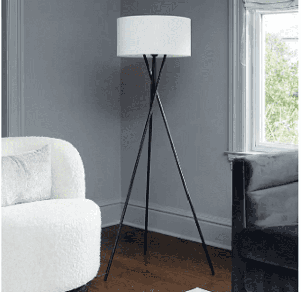 LAMPz 58in Tripod Floor Lamp with White Linen Shade | Open Box