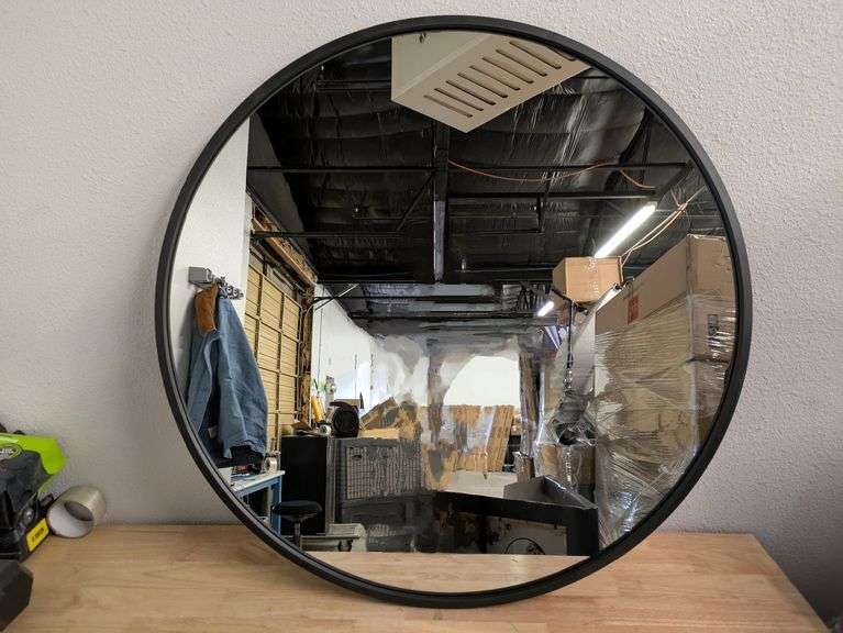 Jill Zarin 36" Elegant Round Metal Wall Mirror, Black | Open Box