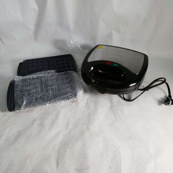 Ovente Electric Indoor Sandwich Grill and Waffle Maker (damaged) Category: Kitchen Goods & Appliances Condition Disclaimer: Please read the title and review images carefully. Unless the title specifies otherwise, auction lots HAVE NOT been tested or inspected. If an items is new or tested, it will be noted in the title. If we are aware of any damage or defect, that will be listed in the title as well. If the title does not specifiy a condition then the item has NOT been tested. Items are being sold as-is. We do not accept returns unless the item is significantly not as decribed. Sales tax and a Buyer's Premium of 13% will be added to your final invoice. Clausulas: Por favor lea los titulos y revise las imagenes cuidadosamente. A menos de que el titulo especifique otra cosa. Los lotes de las subastas NO HAN SIDO PROBADOS NI TAMPOCO INSPECCIONADOS. Si un articulo esta nuevo o esta probado, se va a especificar en el titulo. Si nosotros tenemos el conocimiento de cualquier daño o defecto, tambien sera incluido en el titulo. Si en el titulo no se especifica la condicion en la que se encuentra dicho articulo, entonces significa que el articulo NO ha sido probado. Los articulos se venden tal y como vienen. Nosotros no aceptamos devoluciones a menos de que el articulo no sea el que se describe en el titulo. Se le añadira impuestos de venta (tax) y un cargo extra de comprador Premium del 13% a cargo en su factura final.