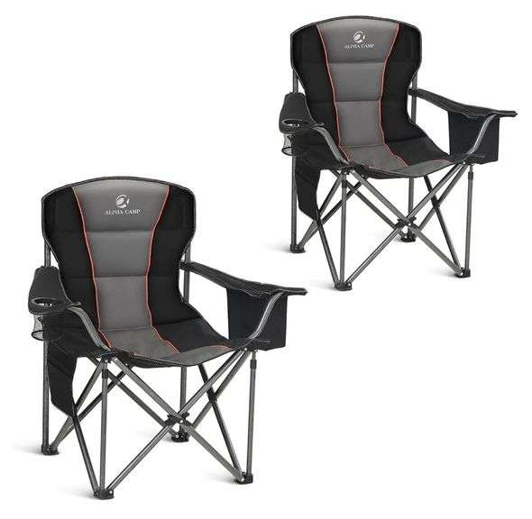 ALPHA CAMP Oversized Camping Folding Chair w/Carrying Case Set of 2 Black | Open Box | (See Condition Notes)