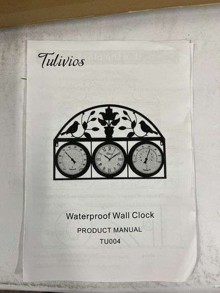 TULIVIOS Outdoor Waterproof Wall Clock w/Thermometer & Hygrometer, 24" | Open Box | (See Condition Notes)