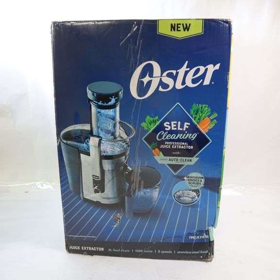 Oster Self Cleaning Professional Juice Extractor Category: Kitchen Goods & Appliances Condition Disclaimer: Please read the title and review images carefully. Unless the title specifies otherwise, auction lots HAVE NOT been tested or inspected. If an items is new or tested, it will be noted in the title. If we are aware of any damage or defect, that will be listed in the title as well. If the title does not specifiy a condition then the item has NOT been tested. Items are being sold as-is. We do not accept returns unless the item is significantly not as decribed. Sales tax and a Buyer's Premium of 13% will be added to your final invoice. Clausulas: Por favor lea los titulos y revise las imagenes cuidadosamente. A menos de que el titulo especifique otra cosa. Los lotes de las subastas NO HAN SIDO PROBADOS NI TAMPOCO INSPECCIONADOS. Si un articulo esta nuevo o esta probado, se va a especificar en el titulo. Si nosotros tenemos el conocimiento de cualquier daño o defecto, tambien sera incluido en el titulo. Si en el titulo no se especifica la condicion en la que se encuentra dicho articulo, entonces significa que el articulo NO ha sido probado. Los articulos se venden tal y como vienen. Nosotros no aceptamos devoluciones a menos de que el articulo no sea el que se describe en el titulo. Se le añadira impuestos de venta (tax) y un cargo extra de comprador Premium del 13% a cargo en su factura final.