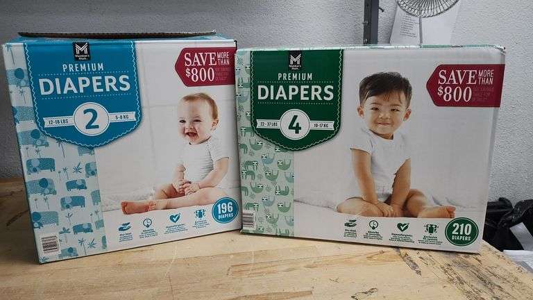 Condition Notes: Some damage to packaging on size 2 diapers, possible missing items/ size 4 diapers in visually good condition