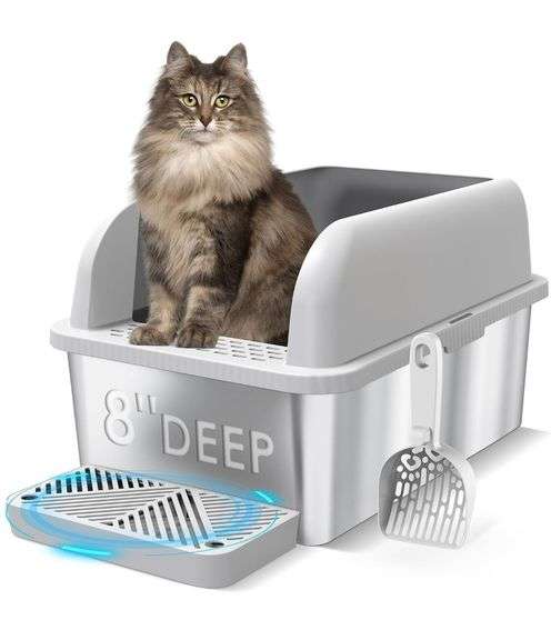 SUZZIPAWS Stainless Steel Cat Litter Box for Big Cats, 8" deep, 49L Litter Capacity | Open Box | (See Condition Notes)