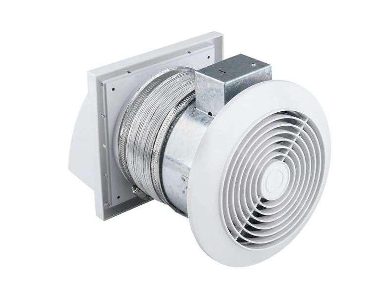 QUINI 512M Through The Wall Exhaust Fan, White Grille, 6" Diameter Vent, 80CFM 4.0 Sones, 15" Retractable Duct | Open Box