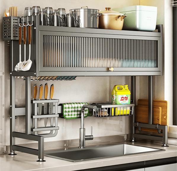 Over The Sink Dish Drainer/Drying Rack, Gray | Open Box