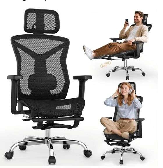 SUNNOW Ergonomic Mesh Office Chair With Foot Rest | Open Box | (See Condition Notes)