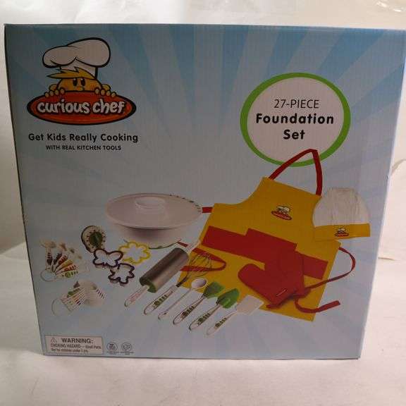 Curious Chef Kids Kitchen Tools 27-Piece Play Set Category: Toys & Games Condition Disclaimer: Please read the title and review images carefully. Unless the title specifies otherwise, auction lots HAVE NOT been tested or inspected. If an items is new or tested, it will be noted in the title. If we are aware of any damage or defect, that will be listed in the title as well. If the title does not specify a condition then the item has NOT been tested. Items are being sold as-is. We do not accept returns unless the item is significantly not as described. Sales tax and a Buyer's Premium of 13% will be added to your final invoice. Clausulas: Por favor lea los titulos y revise las imagenes cuidadosamente. A menos de que el titulo especifique otra cosa. Los lotes de las subastas NO HAN SIDO PROBADOS NI TAMPOCO INSPECCIONADOS. Si un articulo esta nuevo o esta probado, se va a especificar en el titulo. Si nosotros tenemos el conocimiento de cualquier daño o defecto, tambien sera incluido en el titulo. Si en el titulo no se especifica la condicion en la que se encuentra dicho articulo, entonces significa que el articulo NO ha sido probado. Los articulos se venden tal y como vienen. Nosotros no aceptamos devoluciones a menos de que el articulo no sea el que se describe en el titulo. Se le añadira impuestos de venta (tax) y un cargo extra de comprador Premium del 13% a cargo en su factura final.